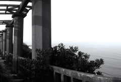 Un lieu ruiné, donc, un lieu en état de chute constante et inexorable (1). Mais, aussi, et dans le même mouvement de pensée, un lieu généalogique, un lieu où des familles vécurent et se détruisirent devant la mer, suscitant chez les deux amis une sorte de curiosité fiévreuse et systématique à l'égard du site, prenant corps dans un véritable « état des lieux » topographique, géologique — même le fond marin, le gouffre faisant face aux falaises, fut interrogé —, prosopographique et généalogique. Ce qui fascinait l'artiste, dans cette architecture littéralement ouverte, c'est que les carcasses imposantes faisaient le cadre — l'écrin labyrinthique et décharné — d'un spectacle vide, un spectacle du vide. Perchées en haut de la falaise, les trois demeures ne donnaient à voir, pour qui y pénétrait, que leur propre déréliction architecturale et le plan frontal d'un ciel mêlé d'océan. Ne voir à travers ces fenêtres sans vitres que le bleu-vert océan, c'était, dans les propres termes de Pascal Convert, ne voir qu'un « plan vide », « sans aucun effet de perspective ». La trouée du lieu, étrangement, frontalisait le vide. Il n'y avait à voir qu'un fond, qu'un front d'azur évoquant, imposant — aussi bien verticalement qu'horizontalement, là réside une grande part du trouble suscité par cette expérience — la perte à perte de vue.