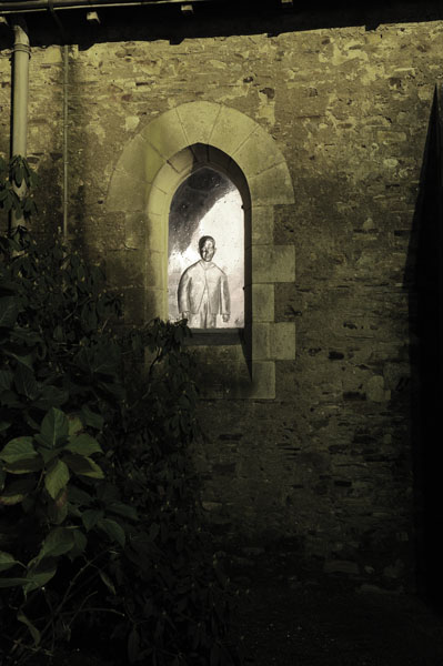 À Saint-Gildas, Pascal Convert a de nouveau mis en œuvre la transformation de figures en un matériau, en l’occurrence le cristal. Il s’inspire de photographies médicales d’enfants aliénés prises à la fin du XIXème siècle à des fins scientifiques et projette de les convertir en vitrail. Dans un premier temps, les photographies sont développées en bas-relief de plâtre, aux dimensions de la baie de l’église, par le sculpteur Claus Velte, un des collaborateurs les plus fréquents de Pascal Convert. Les sujets apparaissent alors en relief. Intervient ensuite le travail du maître verrier Olivier Juteau, qui consiste à faire fondre des morceaux de cristal dans des moules confectionnés à partir des sculptures originales. Jean-Dominique Fleury maître verrier a coordonné l’ensemble des travaux jusqu’à la pose finale. L’effet obtenu est saisissant. Chaque enfant en creux dans la dalle de cristal, vous suit du regard avec une insistance muette et émouvante. Indépendamment de l’impact émotionnel sur l’âme du visiteur tous par leur présence rappellent les vertus thaumaturgiques de Saint-Gildas imploré en ce lieu au Moyen Âge pour la guérison des aliénés.